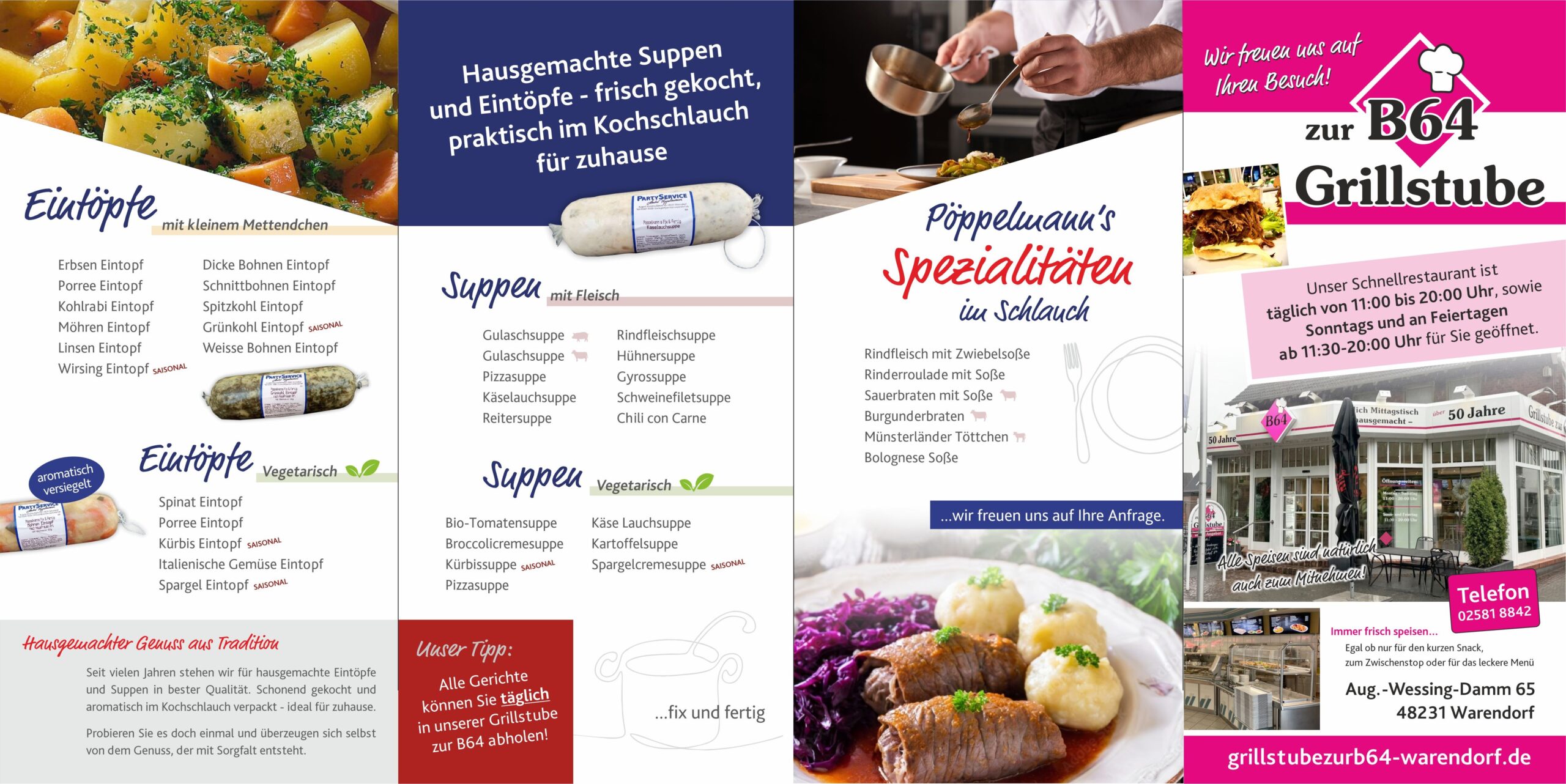 Schon seit einiger Zeit bieten wir Ihnen sehr erfolgreich unsere leckeren Eintöpfe und Suppen im Kochschlauch an. Direkt zum Mitnehmen und Erhitzen.